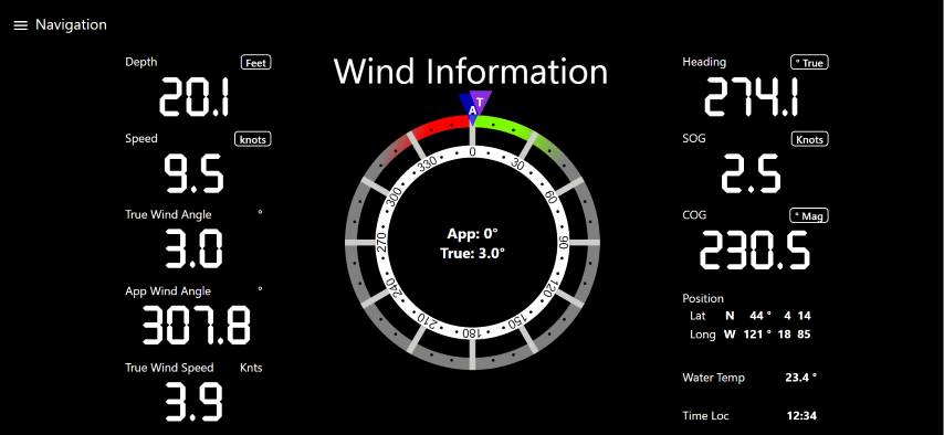 I built up the ability to toggle display of data between magnetic and true for heading data. It was a learning experience but seemed ‘clunky’ in manner which I thought somewhat just not the elegant solution that I liked. I checked the available controls that other people have contributed to the public domain but nothing was available for what I wanted. As part of my work on other parts of the system I had done some work at setting up custom built UI controls so once again I created my own. There is basic information available on the internet for how to do this but I found it some what lacking. Eventually with hours of research, experimentation and debugging using browser developer tools I was able to create my own custom control for a ‘marine instrument’ that I could configure for the data items it would receive and to selectively display the data desired. I found this to be a more elegant contained solution as compared to what I was previously doing. I have now also created a custom control for display true and apparent wind information in a compass rose view.