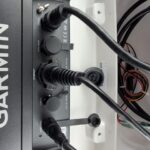 I then crimped on the end of the Garmin data cable for attaching to the connector. I am using the connector as we generally take down the mast every fall so making a fast and easy connection is what I wanted. The additional benefit is that these should be watertight secure connections. And finally I connected the data cable to the back of the chart plotter and closed up the Navpod.