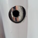 Yes the big hole for the power and data cables. I wanted to make sure this was the ‘minimum’ size hole that I would need to the two cables to get down the mast. I again put tape on the mast for marking where I would drill. After a successful base hole being created I used a Dremel tool again for increasing the hole size a bit and for smoothing out edges to reduce and possible cut/damage for the cables.